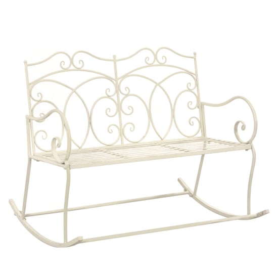 Our captivating, antique-style, as well as functional bench will definitely add a great elegance to your porch or backyard. FEATURES : Material : Wrought Iron Finish : Antique White Featuring an aesthetical and decorative look, this garden bench will be an absolute eye-catcher on your patio Made of wrought iron, the metal chair combines durability with charm, and thus perfectly suitable for outdoor use Additionally, the wide rocking seat will provide a comfortable seating experience for you The bench is easy to assemble Available at an affordable price Images shown are for illustration purpose only DIMENSIONS : Height : 89cm Width : 104cm Depth : 83cm Seat Width : 99cm Seat Depth : 42cm Seat Height from the Ground : 43. 5cm